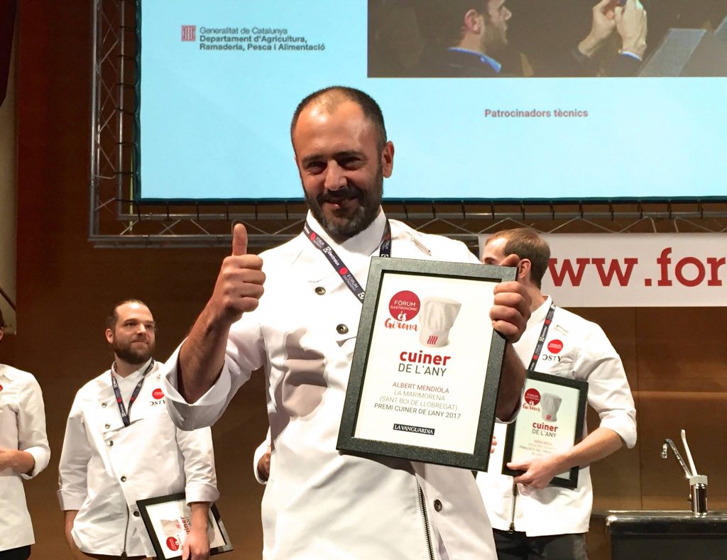 El santboià Albert Mendiola, del restaurant Marimorena, ha rebut aquest cap de setmana el premi a Cuiner de l’Any 2017 en el marc de la novena edició del Fòrum Gastronòmic.