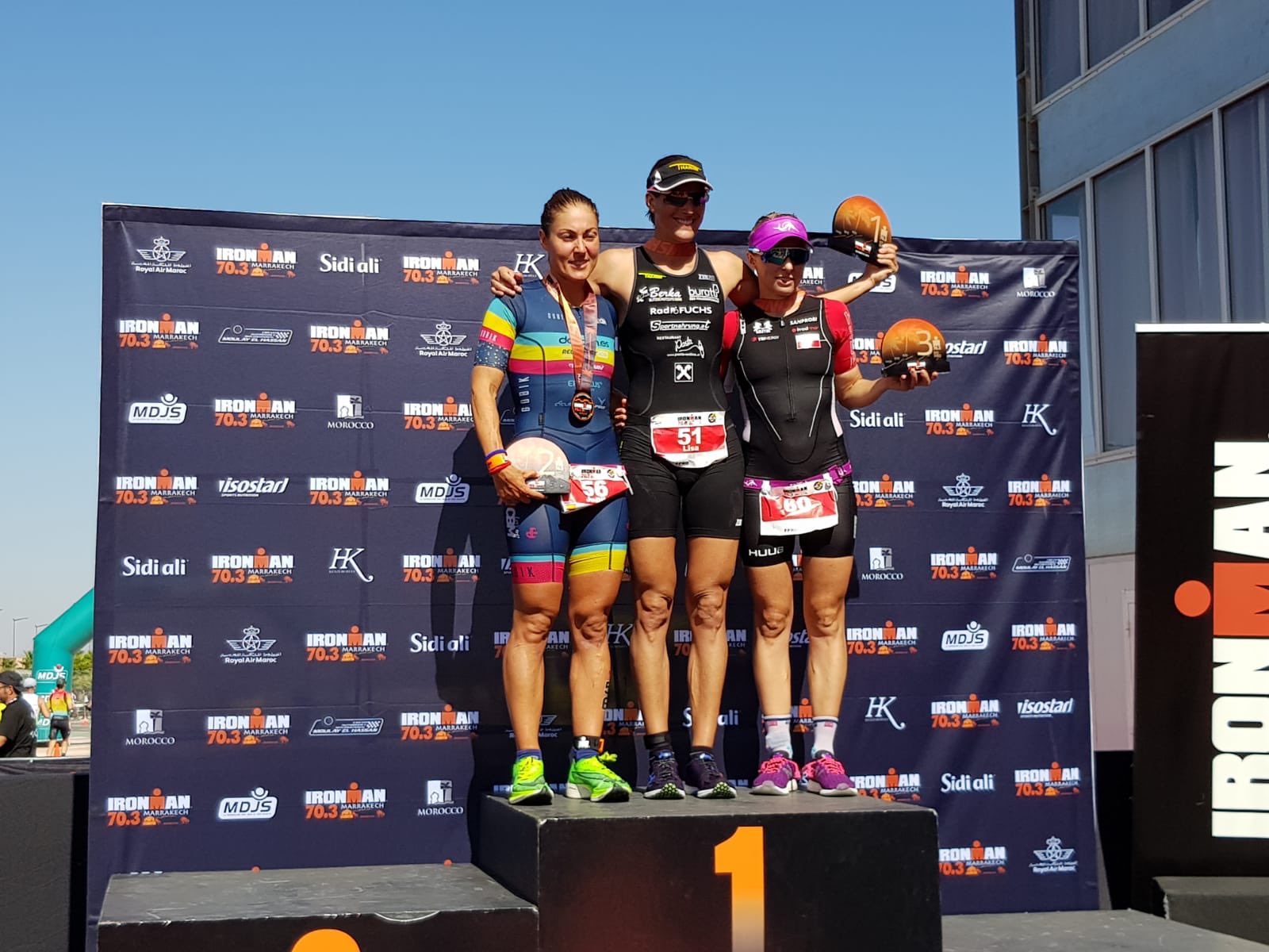 Aquesta prova ha tingut 1.900 metres de natació al llac Lalla Takerkoust, 90 quilòmetres de ciclisme fins a Marràqueix i 21,1 quilòmetres de cursa a peu als jardins Agdal i Oliveraie. Lisa Hütthaler, primera, i Malgorzata Otworowska, tercera, han completat el podi.